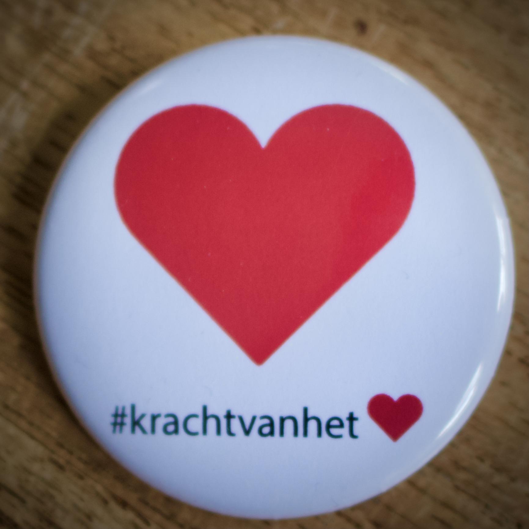 #Krachtvanhet❤️ button met rood gevuld hart.